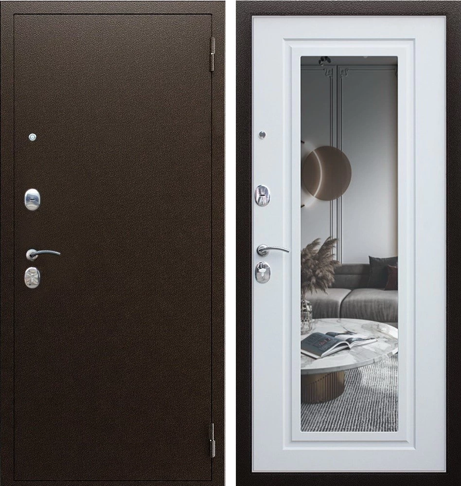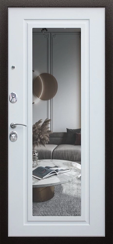 Надежная входная Дверь Комфорт с зеркалом премиум класса по цене 30 602 руб. Большая толщина стали защитит от проникновения в ваш дом, квартиру или коттедж. Используется очень качественная фурнитура: замки, цилиндры, ручки, защелки. Покрытие и отделка двери изготовлено под внимательным контролем производителя. Дверь имеет долгий срок службы и гарантию.