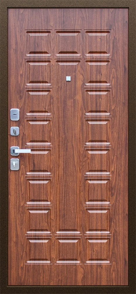Надежная входная Дверь Спартак Орех темный премиум класса по цене 36 302 руб. Большая толщина стали защитит от проникновения в ваш дом, квартиру или коттедж. Используется очень качественная фурнитура: замки, цилиндры, ручки, защелки. Покрытие и отделка двери изготовлено под внимательным контролем производителя. Дверь имеет долгий срок службы и гарантию.