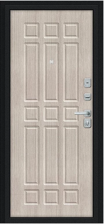 Надежная входная Дверь Браво Мило МФ/BChrome Букле черное/Cappuccino Melinga премиум класса по цене 35 602 руб. Большая толщина стали защитит от проникновения в ваш дом, квартиру или коттедж. Используется очень качественная фурнитура: замки, цилиндры, ручки, защелки. Покрытие и отделка двери изготовлено под внимательным контролем производителя. Дверь имеет долгий срок службы и гарантию.