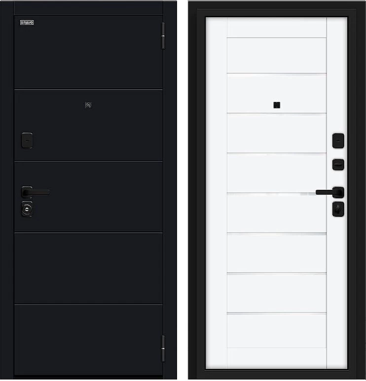 Надежная входная Дверь Браво Прайм/SBlack-Black Shell/White Silk премиум класса по цене 42 402 руб. Большая толщина стали защитит от проникновения в ваш дом, квартиру или коттедж. Используется очень качественная фурнитура: замки, цилиндры, ручки, защелки. Покрытие и отделка двери изготовлено под внимательным контролем производителя. Дверь имеет долгий срок службы и гарантию.